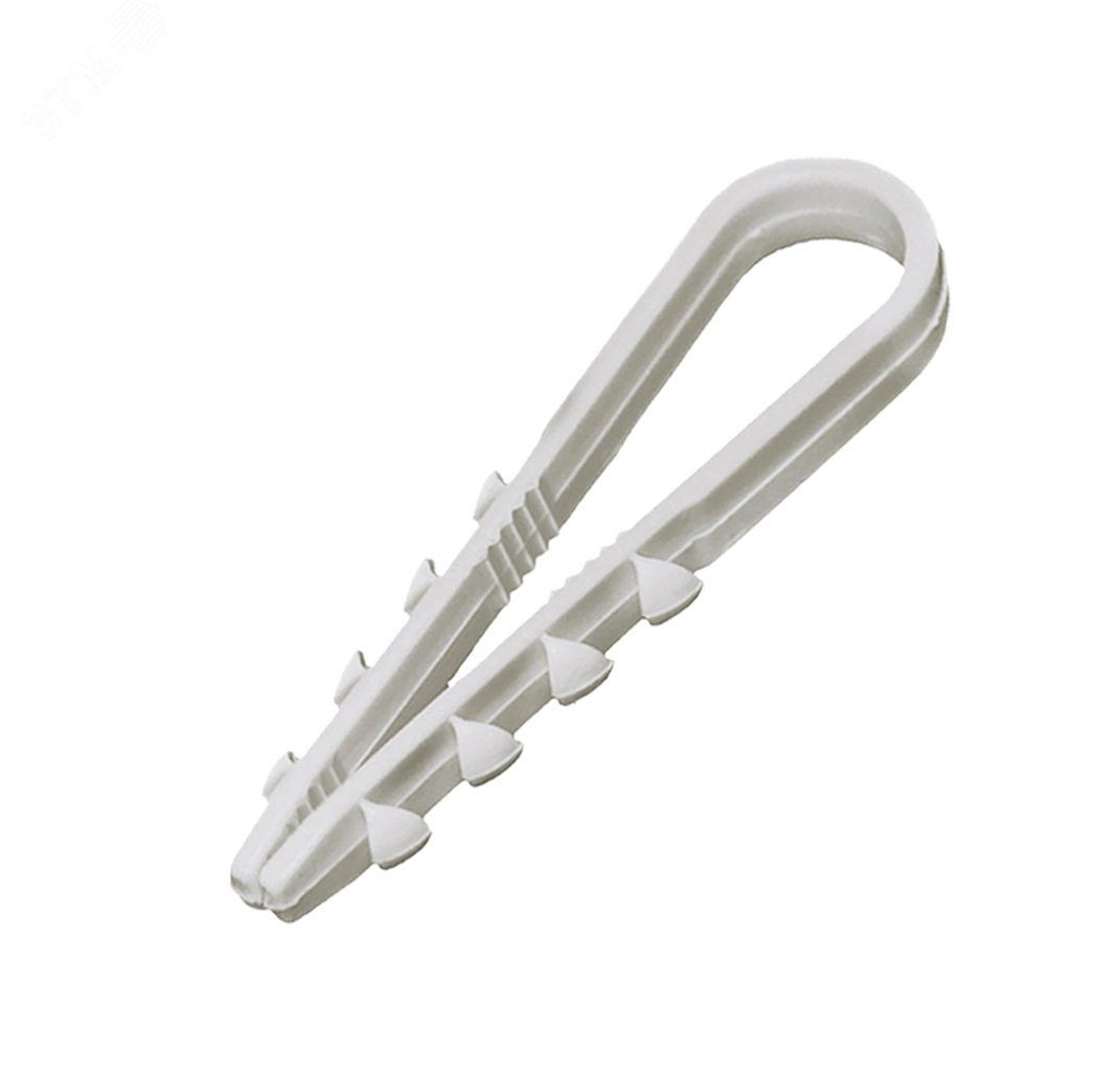Дюбель-хомут 5-10 мм для круглого кабеля, белого цвета, коплект — 100 шт - это приспособления для крепления круглых проводов к бетонным и кирпичным стенам и другим поверхностям. Упрощает процесс монтажных работ, заменяя дюбели и шурупы. В модернизированной версии мы добавили зубцы на внутренних сторонах распорной зоны. Они не позволяют скользить распорным концам друг об друга, что облегчает монтаж кабеля.