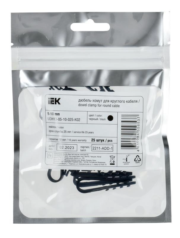 Полное описание: Дюбель-хомут 5-10мм для круглого кабеля нейлон черн. (уп.25шт) IEK UDH13-05-10-025-K02
