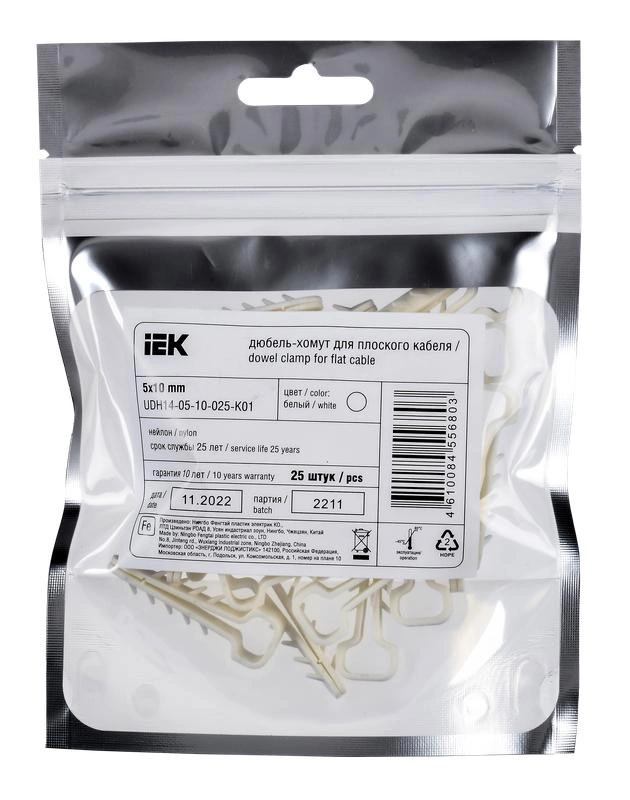 Полное описание: Дюбель-хомут 5х10мм для плоского кабеля нейлон бел. (уп.25шт) IEK UDH14-05-10-025-K01