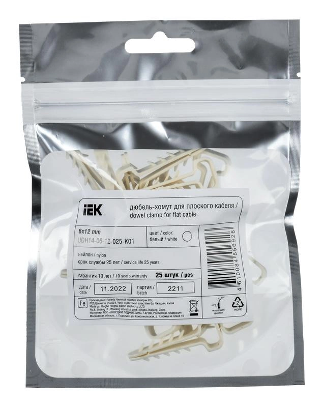 Полное описание: Дюбель-хомут 6х12мм для плоского кабеля нейлон бел. (уп.25шт) IEK UDH14-06-12-025-K01