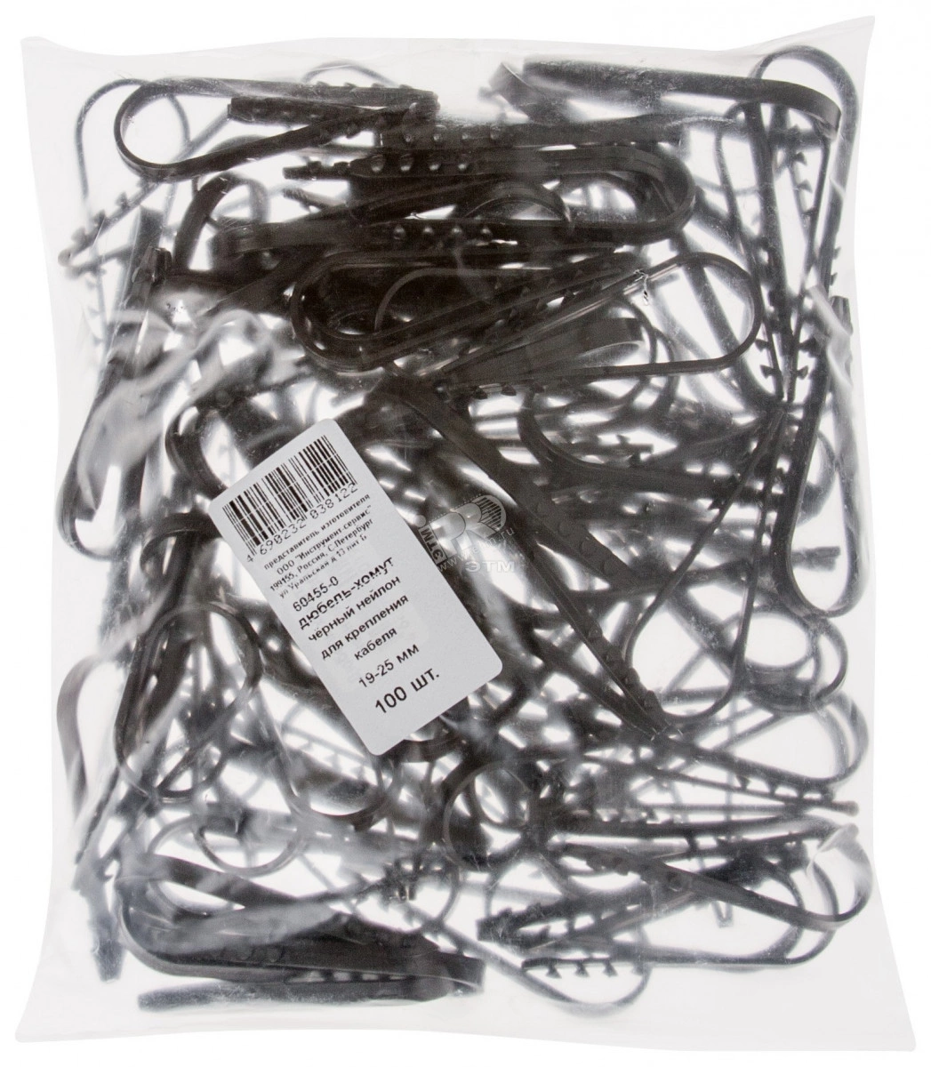 Дюбель-хомут для крепления кабеля 19-25мм черный (100шт)
