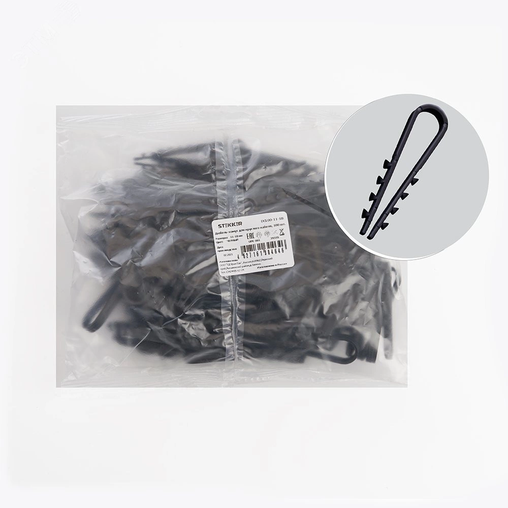 Полное описание: Дюбель-хомут для круглого кабеля (11-18мм), черный (100шт.) Stekker