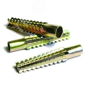 Дюбель для газобетона металлический представляет собой полый распорный элемент, по краям которого находятся зубчатые желобки.