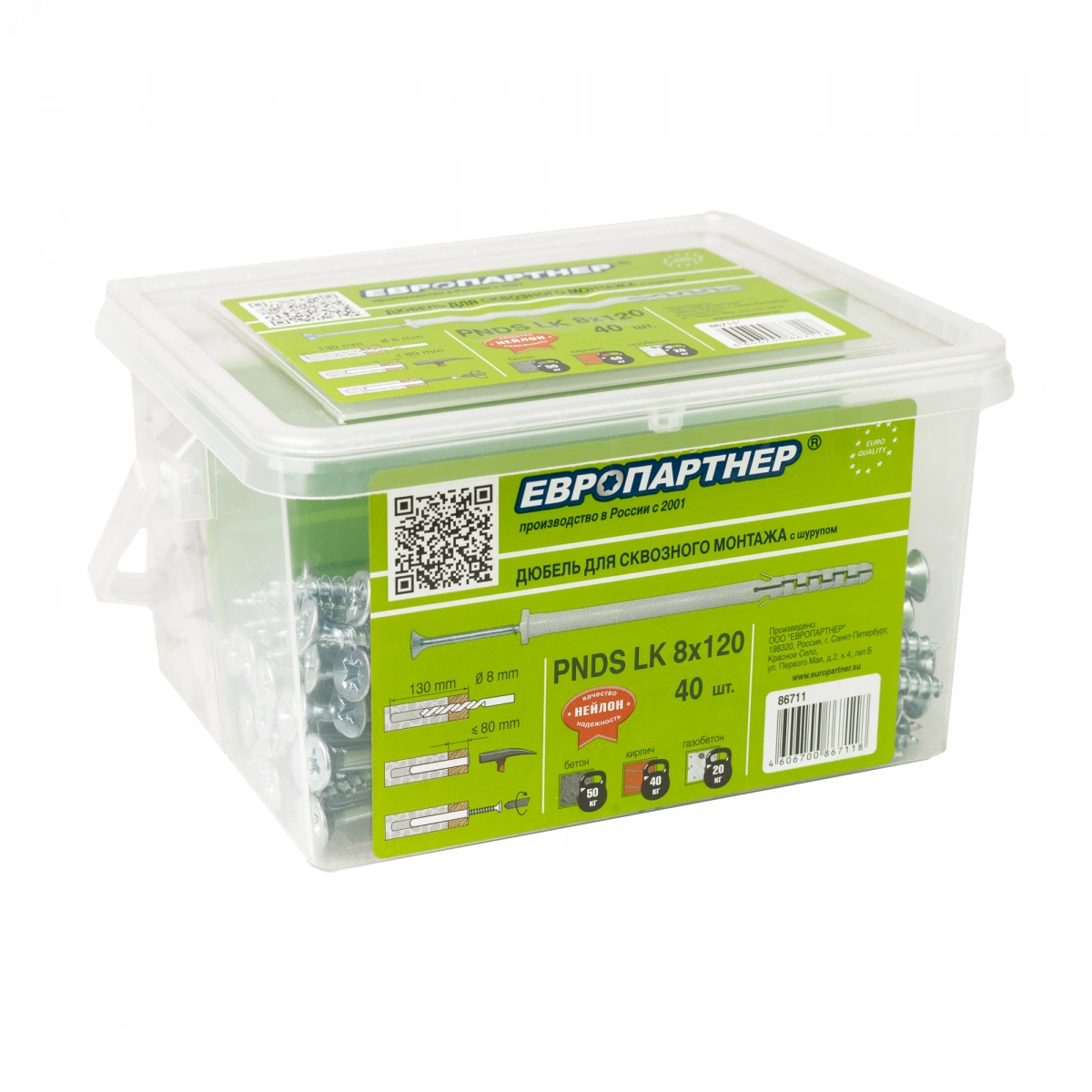 Дюбель нейлоновый распорный для сквозного монтажа с шурупом PNDS 8x120мм (40шт)