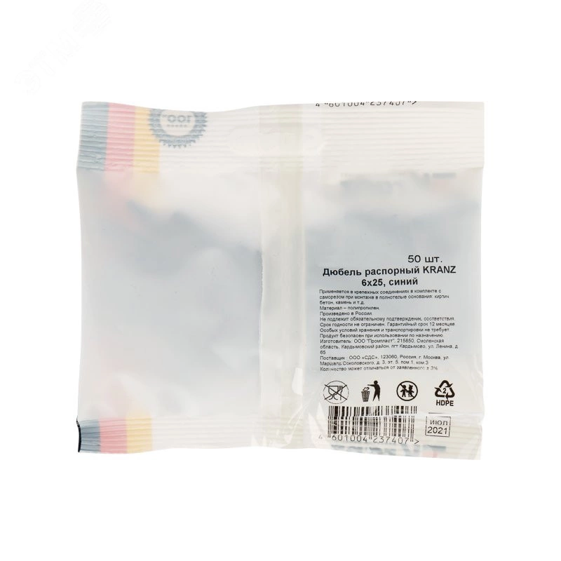 Дюбель распорный 6х25мм. синий. полипропилен (50 шт/уп)
