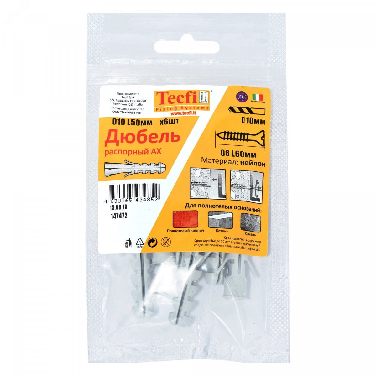 Дюбель распорный AX нейлон 10x50 (6 шт) - пакет Tecfi