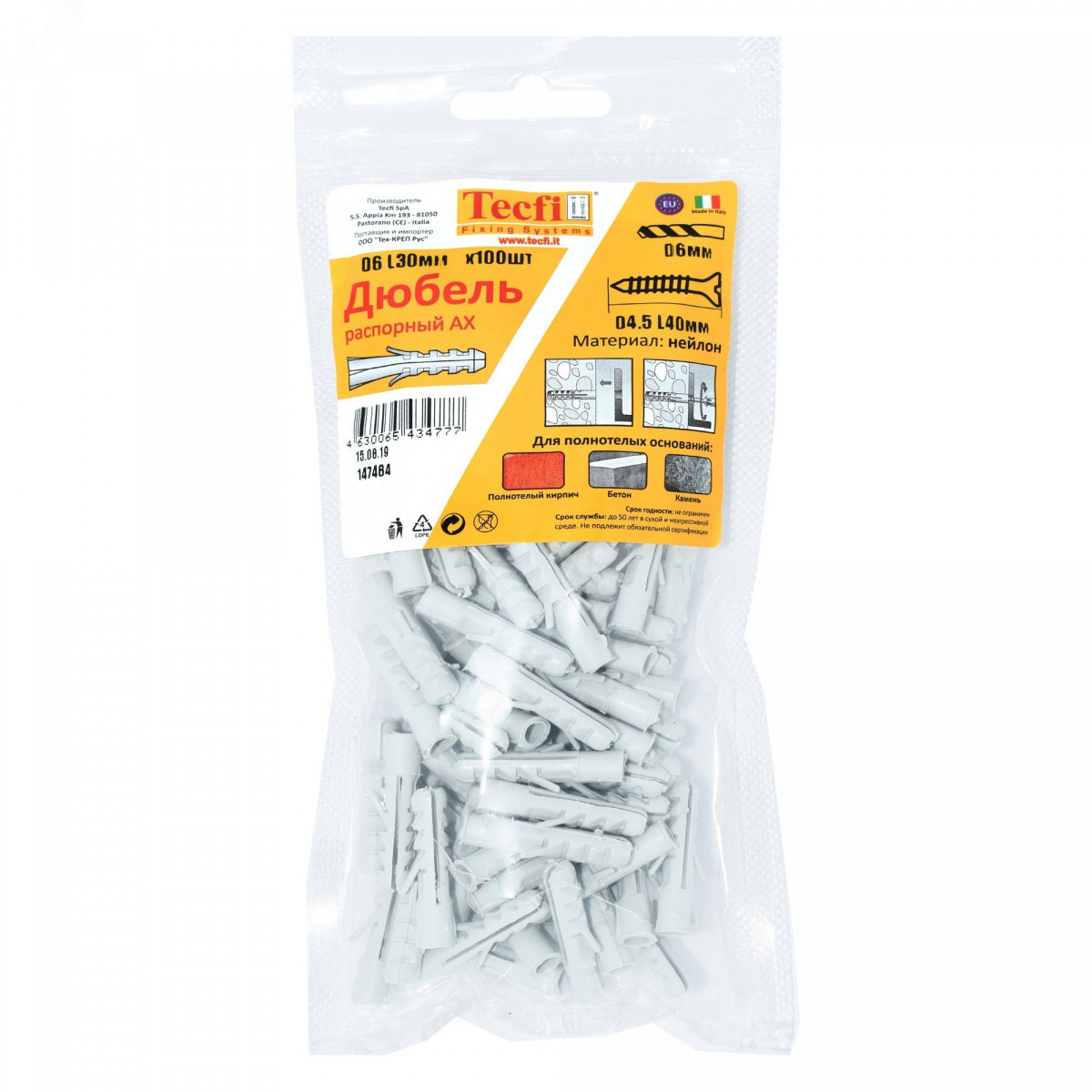 Дюбель распорный AX нейлон 6x30 (100 шт) - пакет Tecfi