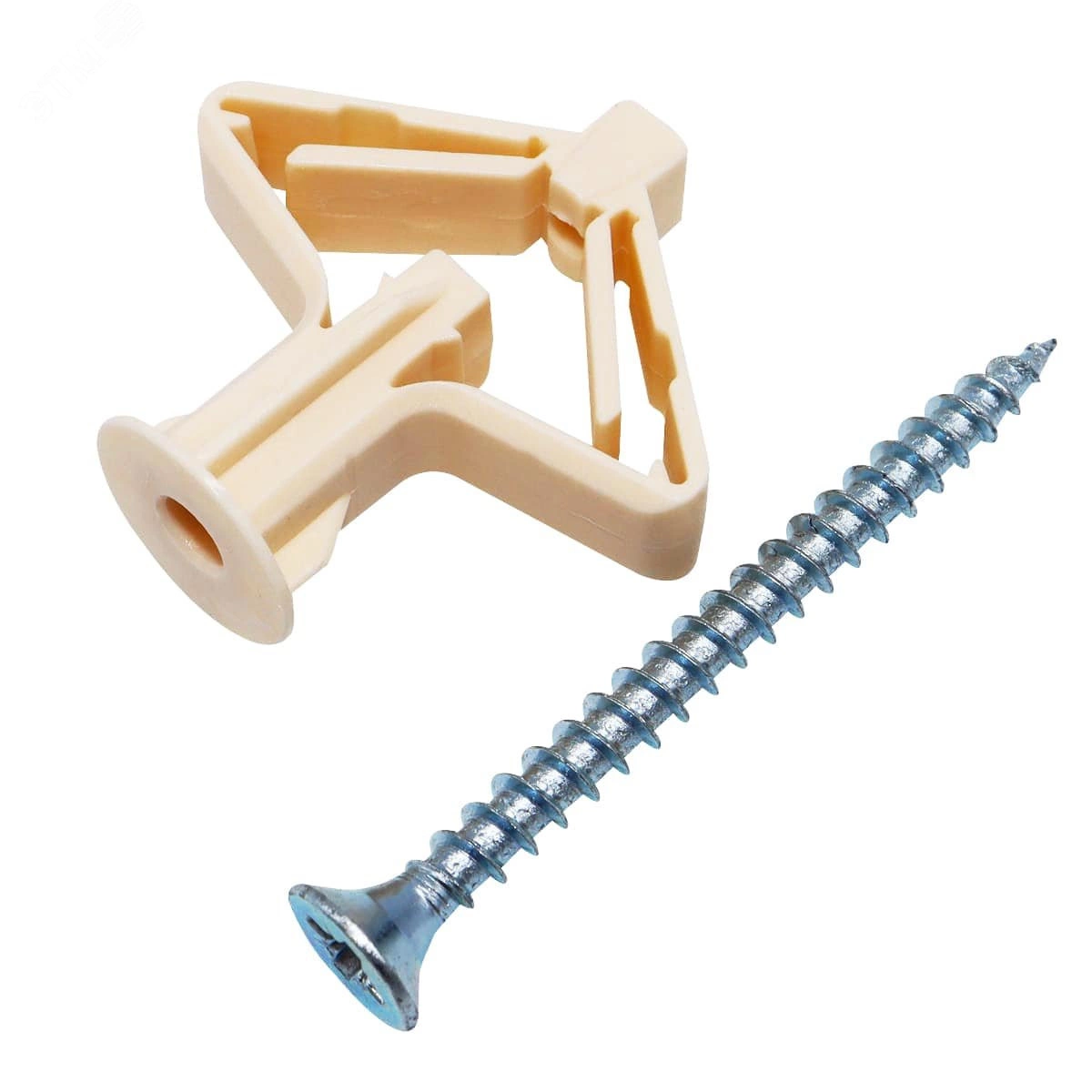 Строительство, ремонт. Предназначен для крепления легкого оборудования и деталей к листовым материалам. Применяется для крепления оконечных электротехнических устройств, светильников, картин, вешалок, зеркал, полотенцедержателей. В комплекте шуруп 3.