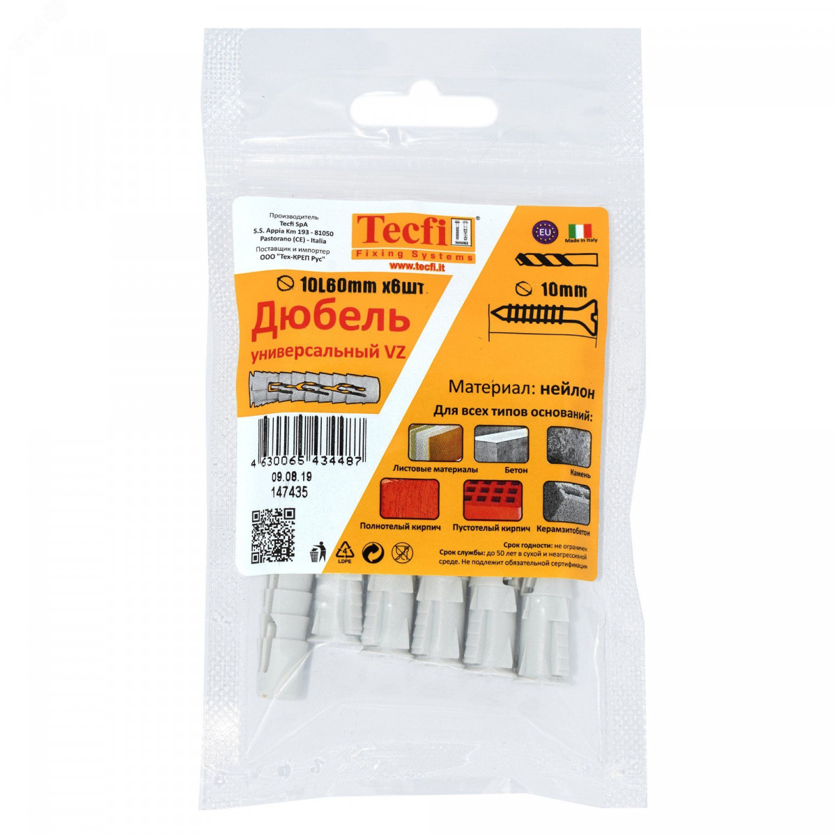 Дюбель универсальный VZ нейлон 10x60 (6 шт) - пакет Tecfi
