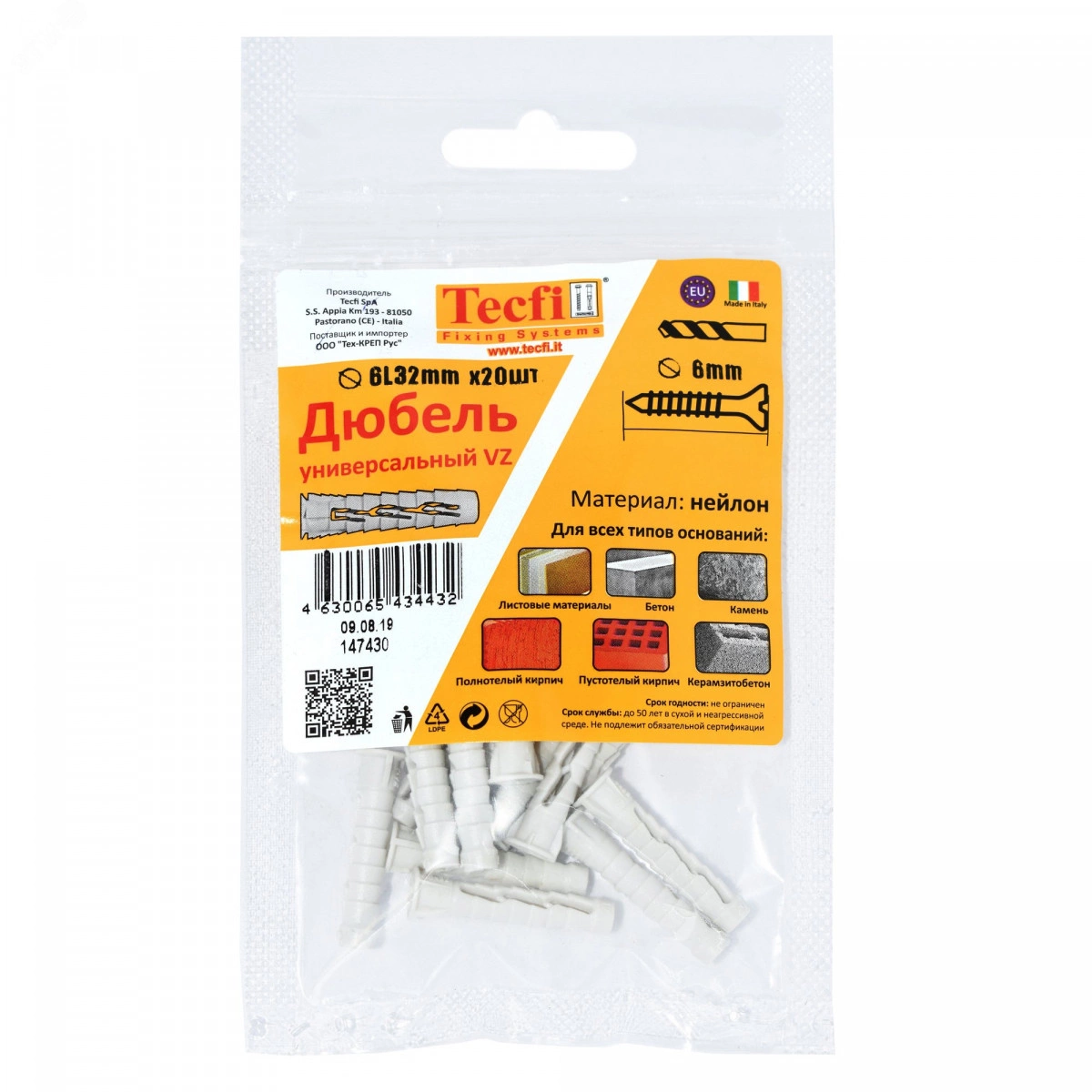 Дюбель универсальный VZ нейлон 6x32 (20 шт) - пакет Tecfi