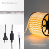 Дюралайт-гибкий световой шнур выполненный из ПВХ трубки с токопроводящими жилами и светодиодами внутри. Используется для декоративной и архитектурной подсветки объектов. Шнур с 2-мя проводами внутри используется в режиме постоянного свечения. Дюралайт с 3-мя и более жилами питания при использовании контроллера это позволяет создавать эффект ''бегущей волны'' (режим свечения с динамикой). Каждая бухта уже укомплектована 1 шнуром для подключения, максимальная подключаемая длина 100м. Дополнительно предлагаются контроллеры для дюралайта мощностью от 24 до 340 Вт, что позволяет подключить в одну цепь до 140 метров. При подключении дюралайта к соединительному разъему необходимо заизолировать свободное воздушное пространство соединительного разъема (муфты) морозостойким силиконовым герметиком. Сверху данного соединения необходимо использовать термоусаживаемую трубку.