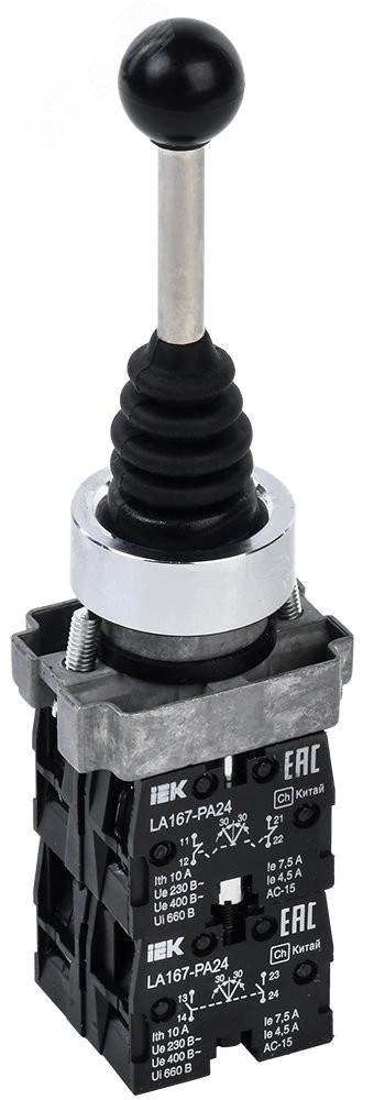 Джойстик предназначен для обеспечения интуитивно понятного управления оборудованием. Легкая установка в стандартные посадочные места 22 мм обеспечивает разнообразие применения устройства управления в различных вариациях оборудования управления и контроля.