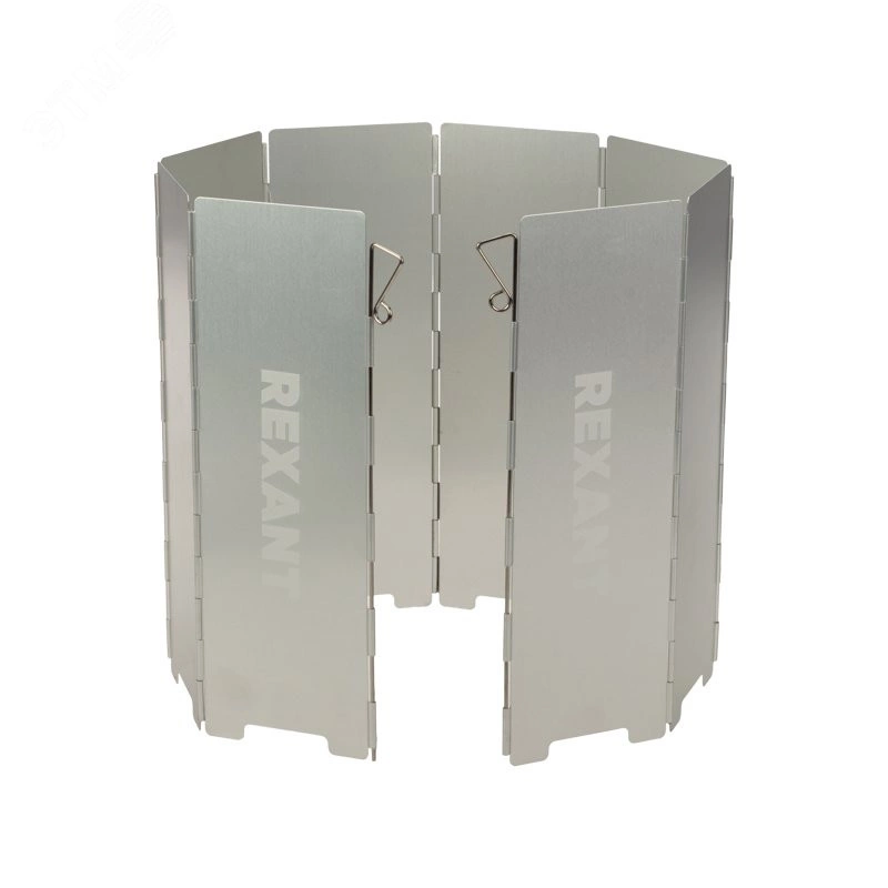 Экран 'Щит' REXANT для устанавливается вокруг портативных газовых плит с целью их защиты от ветра во время работы. Применение данного устройства позволяет снизить расход газовой смеси в несколько раз. Благодаря экрану пламя не будет сдуваться и затухать, что позволит уменьшить время разогрева и приготовления пищи. Экран металлического матового цвета поставляется с чехлом в комплекте. При использовании достаточно развернуть экран и расставить вокруг плитки. Если плитка большая, можно объединить два экрана в один. Для наилучшей устойчивости при установке на почву рекомендуем закрепить экран при помощи штырей на первой и последней частях экрана.