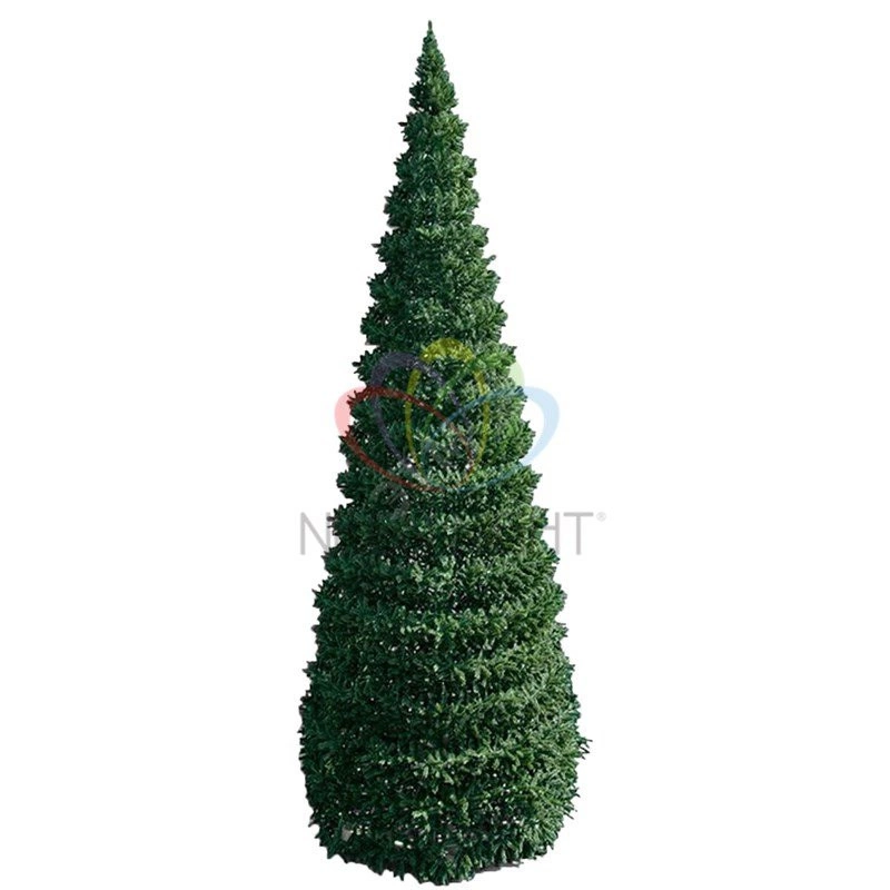 Ель представляет собой сборно-разборную металлическую конструкцию, состоящую из стального каркаса покрытого порошковой краской с горячей сушкой, представляющего собой конус с центральным стволом и дугообразными элементами. Данная каркасная ель высотой 4 м имеет длину основания нижних веток 3,454 м. Диаметр нижних веток 1,1 метра. Необходим пригруз 150 кг ( приобретается отдельно). Декоративное ограждение рассчитывается и приобретается отдельно.