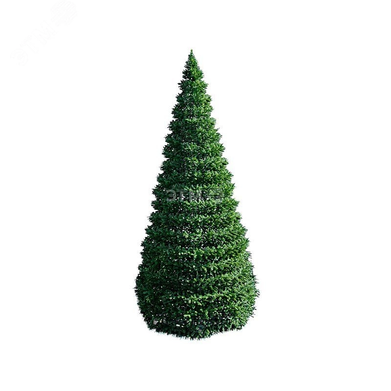 Данная каркасная ель высотой 10 м имеет длину основания нижних веток 12,246 м. Диаметр нижних веток 3,9 метра. Необходим пригруз 2500 кг ( приобретается отдельно). Декоративное ограждение рассчитывается и приобретается отдельно.