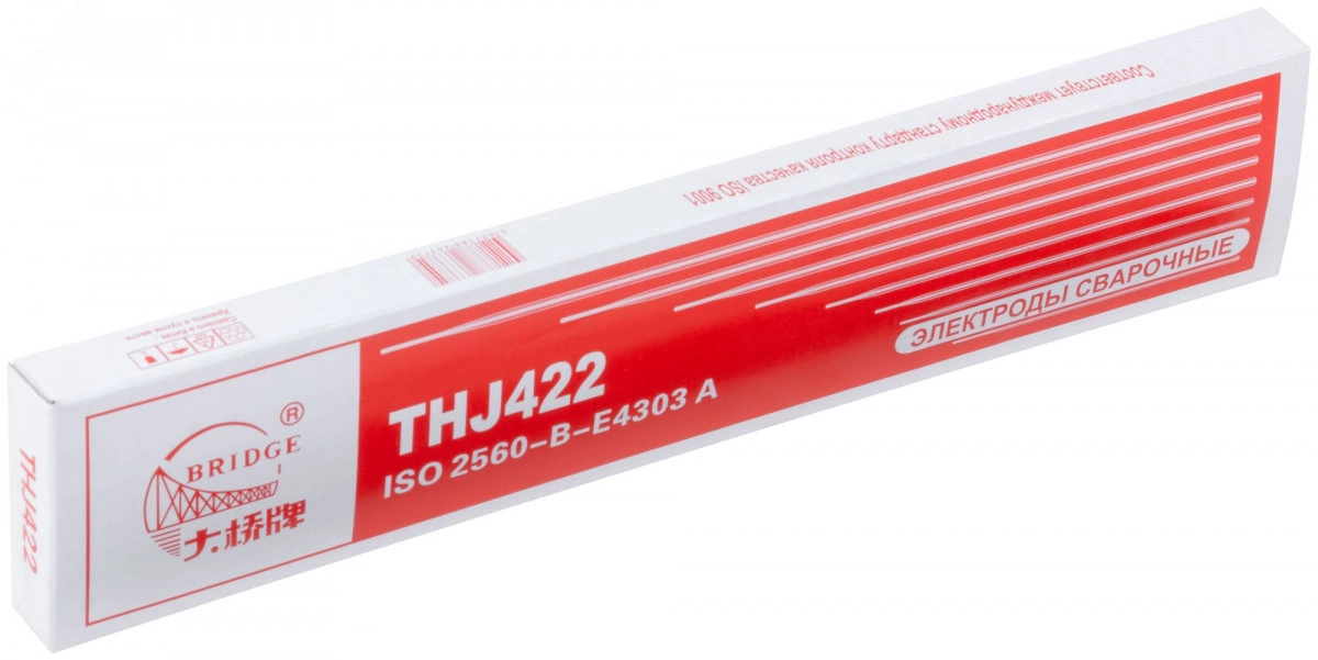 BRIDGE THJ422 — сварочный электрод с рутиловым покрытием. Подходит как для переменного, так и для постоянного тока. Предназначен для ручной дуговой сварки конструкций из низкоуглеродистых конструкционных сталей с классом прочности Q235. Сварка позиций - PA, PB, PC, PD, PE, PF. Рутиловые электроды при сварке практически не выделяют опасных веществ, в связи с чем не требуют использования принудительной вентиляции и респиратора.