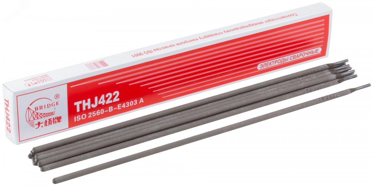 BRIDGE THJ422 — сварочный электрод с рутиловым покрытием. Подходит как для переменного, так и для постоянного тока. Предназначен для ручной дуговой сварки конструкций из низкоуглеродистых конструкционных сталей с классом прочности Q235. Сварка позиций - PA, PB, PC, PD, PE, PF. Рутиловые электроды при сварке практически не выделяют опасных веществ, в связи с чем не требуют использования принудительной вентиляции и респиратора.