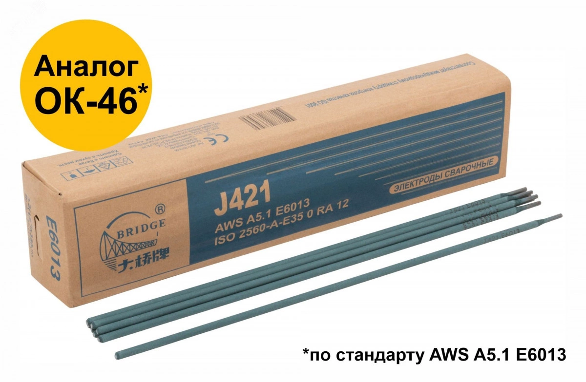 BRIDGE J421 - сварочный электрод с рутиловым покрытием. Подходит как для переменного тока, так и для постоянного. Предназначен для ручной дуговой сварки конструкций из низкоуглеродистых конструкционных сталей, тонколистовой стали с коротким прерывистым сварным швом и сварки, которая требует плавного прохода. Сварка позиций: PA, PB, PC, PD, PE, PF.