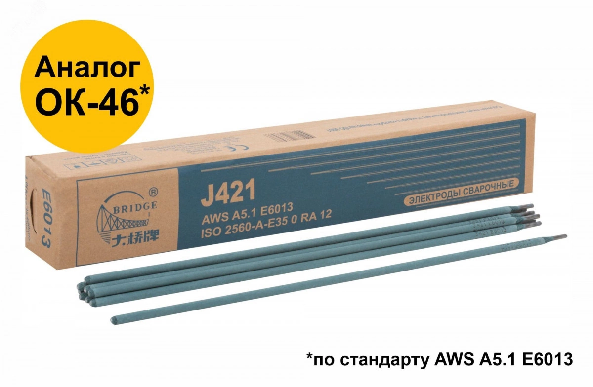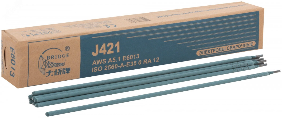 BRIDGE J421 - сварочный электрод с рутиловым покрытием. Подходит как для переменного тока, так и для постоянного. Предназначен для ручной дуговой сварки конструкций из низкоуглеродистых конструкционных сталей, тонколистовой стали с коротким прерывистым сварным швом и сварки, которая требует плавного прохода. Сварка позиций: PA, PB, PC, PD, PE, PF.