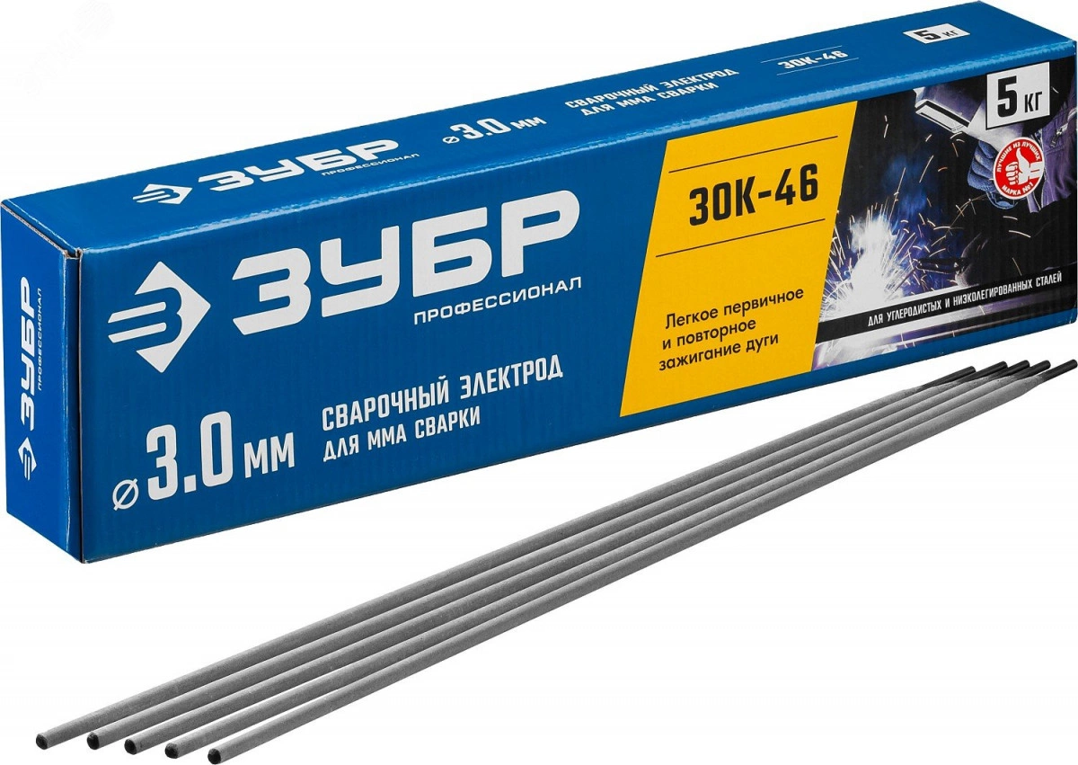 Электроды ЗОК-46 рутил-целлюлозный, d 3.0 х 350 мм, 5 кг в коробке, Профессионал.
