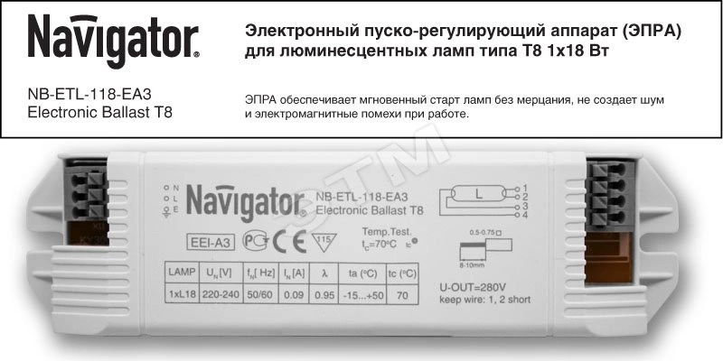 Полное описание: Электронный пускорегулирующий аппарат ЭПРА ЛЛ 1х18 встраиваемый