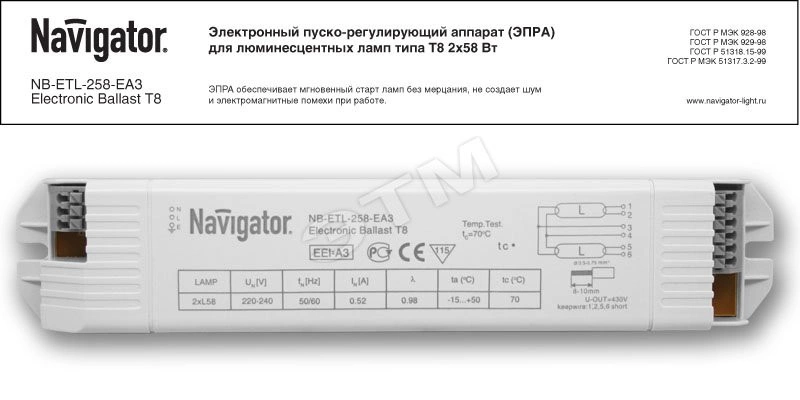 Полное описание: Электронный пускорегулирующий аппарат ЭПРА ЛЛ 2х58 встраиваемый