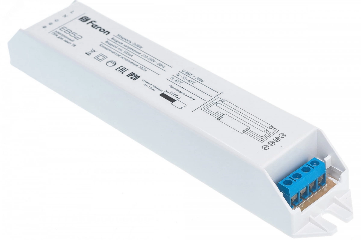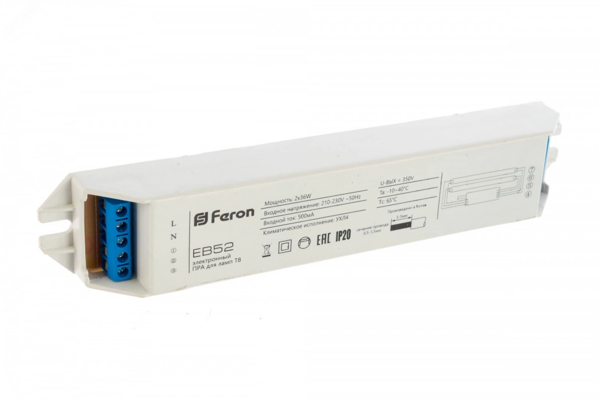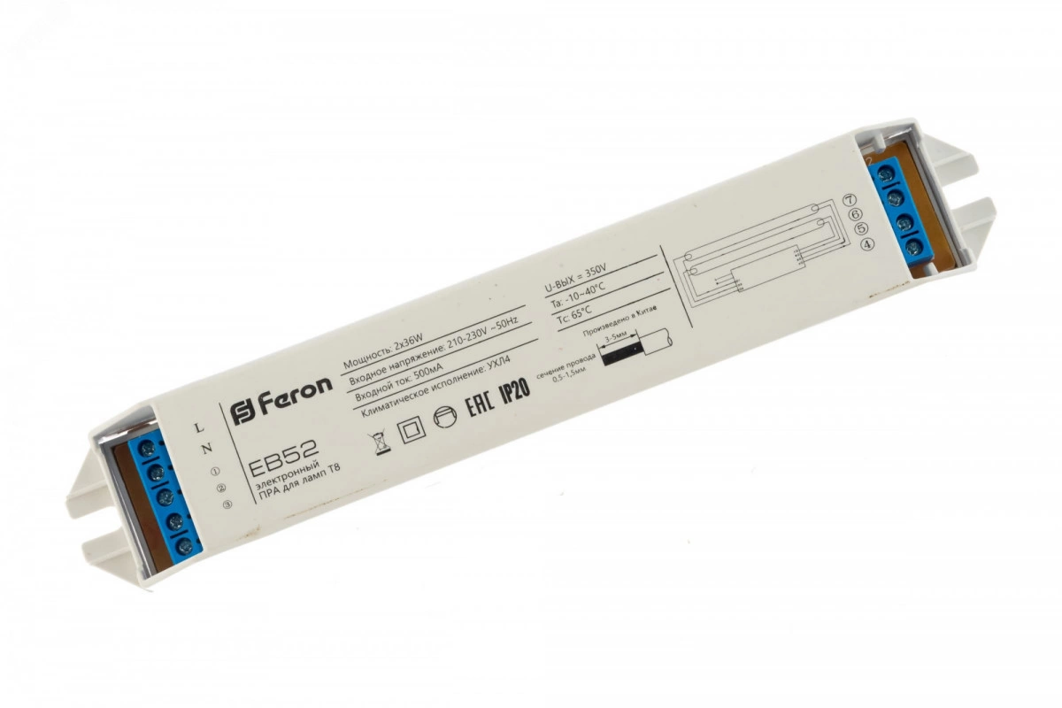 Электронный балласт (ЭПРА) предназначен для запуска и поддержания стабильного режима работы люминесцентных ламп. ЭПРА предназначен для использования с люминесцентными лампами типа Т8. Устанавливается на нормально воспламеняемую поверхность.