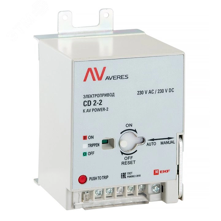 Выключатели АV POWER могут комплектоваться дополнительными устройствами - независимыми расцепителями, расцепителями минимального напряжения, дополнительными и аварийными контактами, ручным поворотным приводом и электроприводом и различными их сочетаниями. Дополнительно электронные расцепители EТU2.2 , EТU6.2 комплектуются коммуникационным модулем передачи данных на стандартные шины. При применении электронных расцепителей EТU2.2, EТU6.2 возможно создание интеллектуальных систем управления и защиты на базе контроллеров, для этого имеются различные модули связи и конверторы протоколов, а также выносные панели программирования и индикации. Проводники от дополнительных устройств выводятся на корпус выключателя с боков через специальные гнезда. Элетро- и ручной приводы крепятся на корпусе выключателя.
