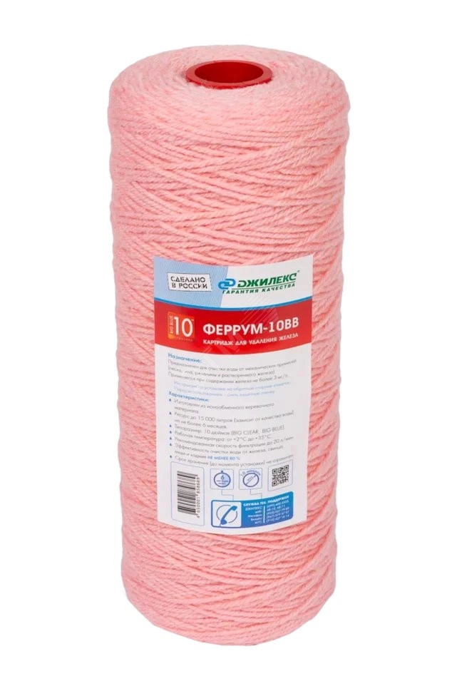 Элемент фильтрующий предназначен для очистки воды от растворенного и нерастворенного железа, марганца, тяжелых а также механических примесей - песка, ржавчины, окалины. Очищающий материал - катионообменная волокнистая нить, намотанная на перфорированный каркас. Типоразмер колбы - BIG BLUE 10