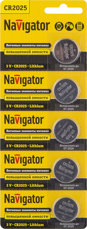 Элемент питания литиевый CR2025 94 764 NBT-CR2025-BP5 (блист.5шт) Navigator 94764