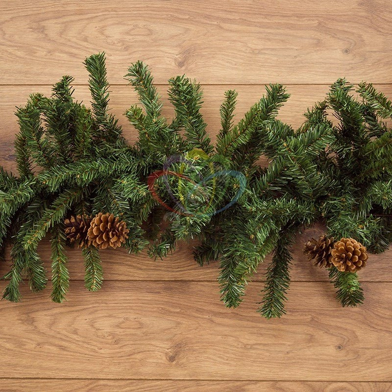 Гирлянда ''Еловый шлейф'' длиной 2,7 дополнена шишками, что увеличивает реалистичность исполнения. Новогодний декор сплетен из искусственных хвойных ветвей, диаметр гирлянды 36 см.