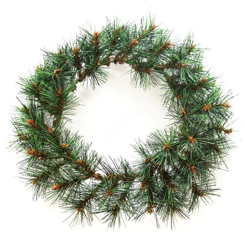 Еловый венок диаметром 30 см — реалистичный новогодний декор, выполненный в виде молодых сосновых веточек из лески, сплетенных в аккуратное кольцо. Декоративное изделие станет прекрасным украшением двери, стены, окна и может использоваться как дома, так и на улице. Если добавить к венку светодиодную гирлянду на батарейках, небольшие елочные игрушки, мишуру, то композиция приобретет нарядный и завершенный вид. Украшение предполагает простое хранение и рассчитано на долгий срок службы.