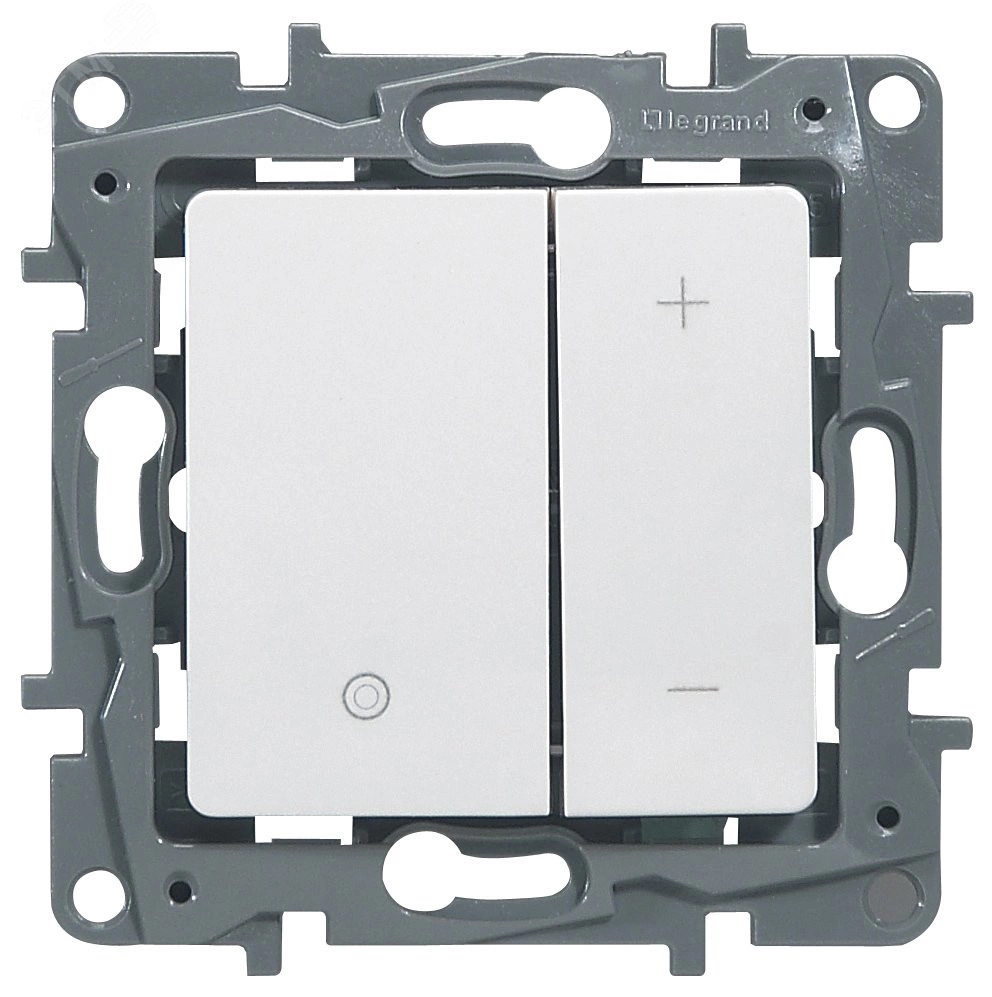 Клавишный светорегулятор Legrand Etika для скрытого монтажа. Позволяет регулировать яркость ламп. Экономит электроэнергию. Благодаря функции плавного включения существенно продлевает срок службы ламп. Встроенная память позволяет одним нажатием выводить яркость на комфортный уровень. Предусмотрен режим с фиксированными уровнями яркости (33-66-100%). Электронная защита от перегрузки и короткого замыкания. Особенности - Светорегулятор универсальный. Подходит для управления лампами - Накаливания и галогенными в диапазоне 3-400Вт, Диммируемыми светодиодными в диапазоне - 3-75 Вт (не более 10 шт.). Запоминание последнего уровня яркости, Режим с фиксированными уровнями яркости (33-66-100%), Режим плавного отключения в течение часа, Защита от перегрузки и короткого замыкания. Двухпроводное подключение (в разрыв фазного проводника). Устанавливается в стандартную монтажную коробку. Возможно внешнее управление (линия до 50 метров), кнопками без подсветки с Н/О контактом.