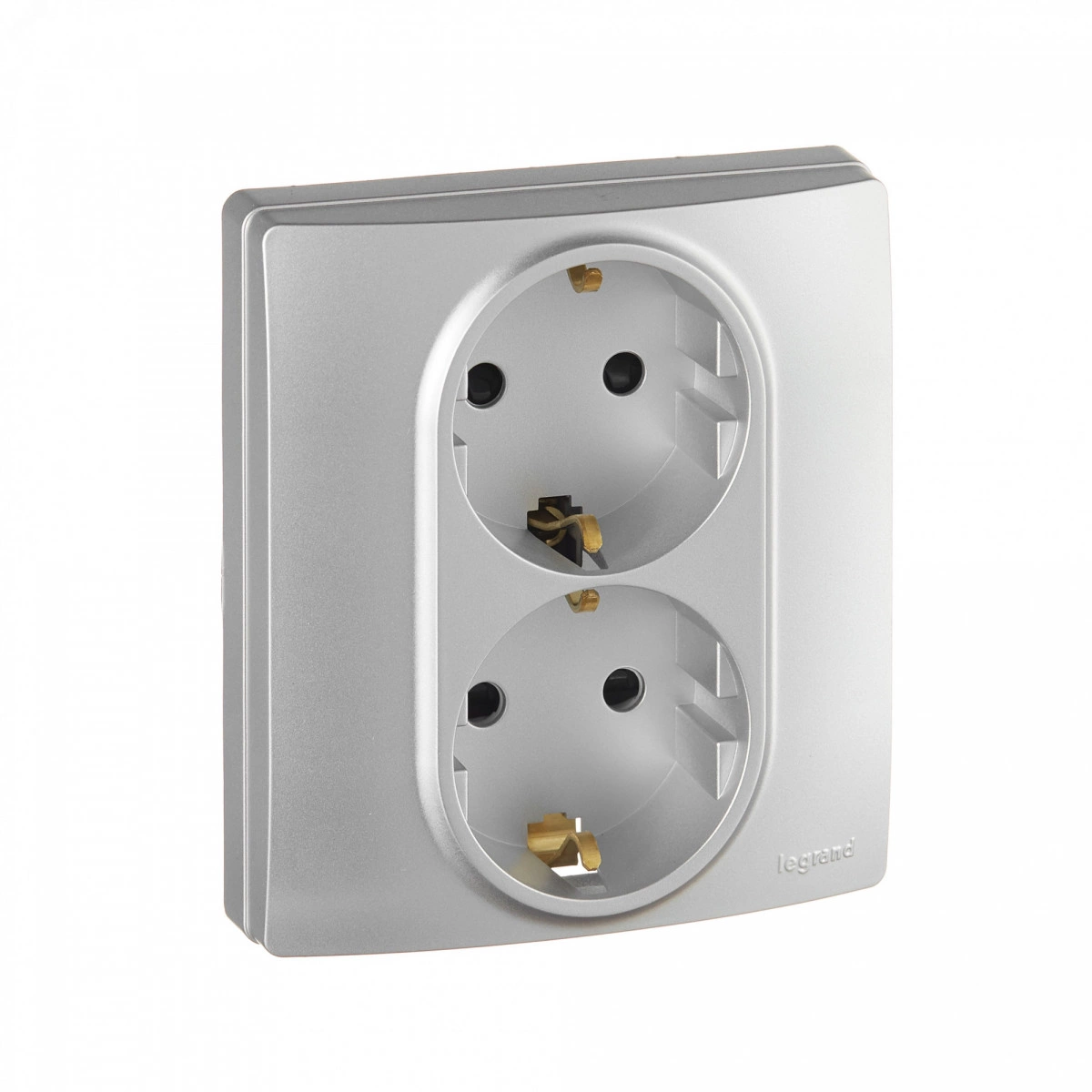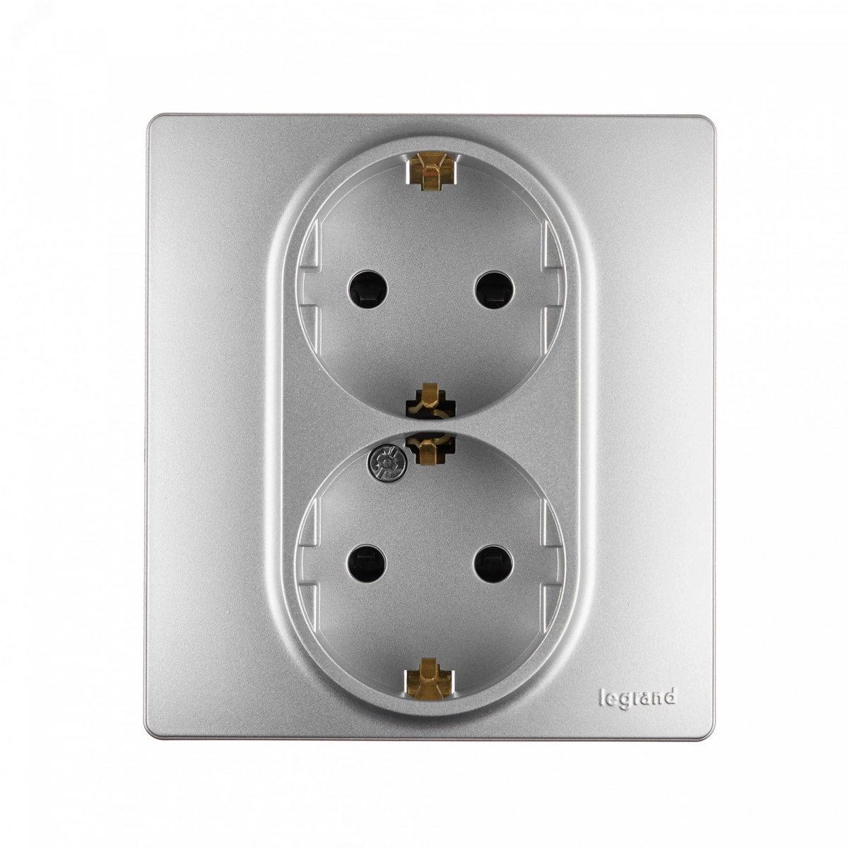 Полное описание: ETIKA Розетка двойная с заземлением со шторками алюминий автоматические зажимы