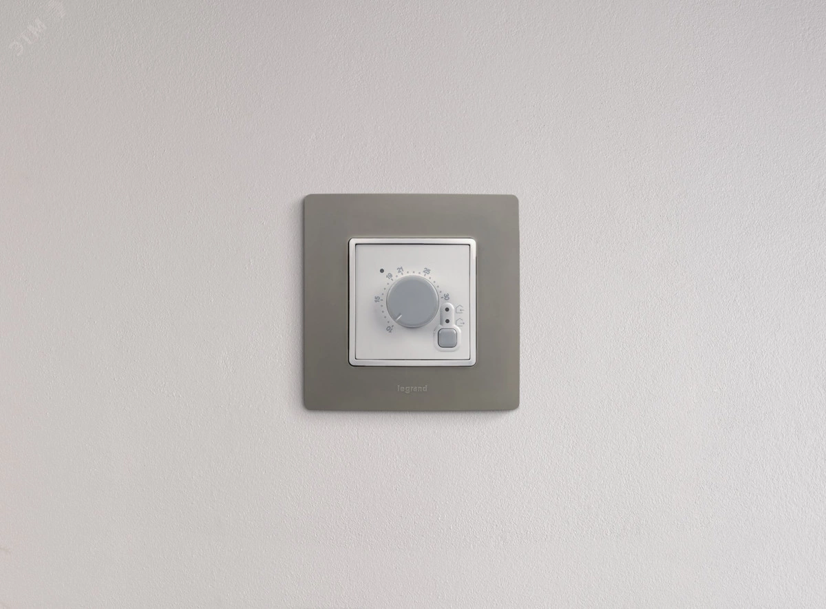 Термостат предназначен для автоматического поддержания заданной температуры теплого пола с электроподогревом. Поставляется с выносным датчиком (длина кабеля 4 м). Оснащен «сухим» контактом для управления нагрузкой. Индикация подключения нагрузки и состояния термостата осуществляется светодиодами на лицевой панели устройства. Механизм дополняется рамкой. Встроенный или накладной монтаж Термостат укомплектован выносным температурным датчиком и оснащен «сухим» контактом, который замыкается при снижении температуры ниже заданной. При достижении требуемого уровня температуры контакт размыкается. Диапазон регулировки от 7° C до 40° C. Расширенный диапазон регулировки - мин. от 7 до 30° C