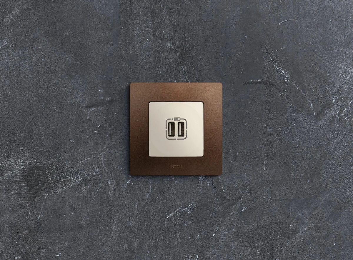 Полное описание: ETIKA Зарядное устройство с двумя USBразьемами 240В/5В 2400мА слоновая кость