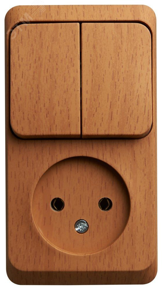 Блок Systeme Electric (ранее Schneider Electric) ЭТЮД (бук, открытой установки) предназначен для применения в сетях до 250В, состоит из розетки на 16А, со шторками, без заземления и двухклавишного выключателя на 10А. Две клавиши позволяют управлять двумя источниками света с одной точки. Он удобен в применении и отлично подходит для коридора. Изделия цвета Бук обладают уникальным рисунком, напоминающим древесный сруб. Сделано в России.