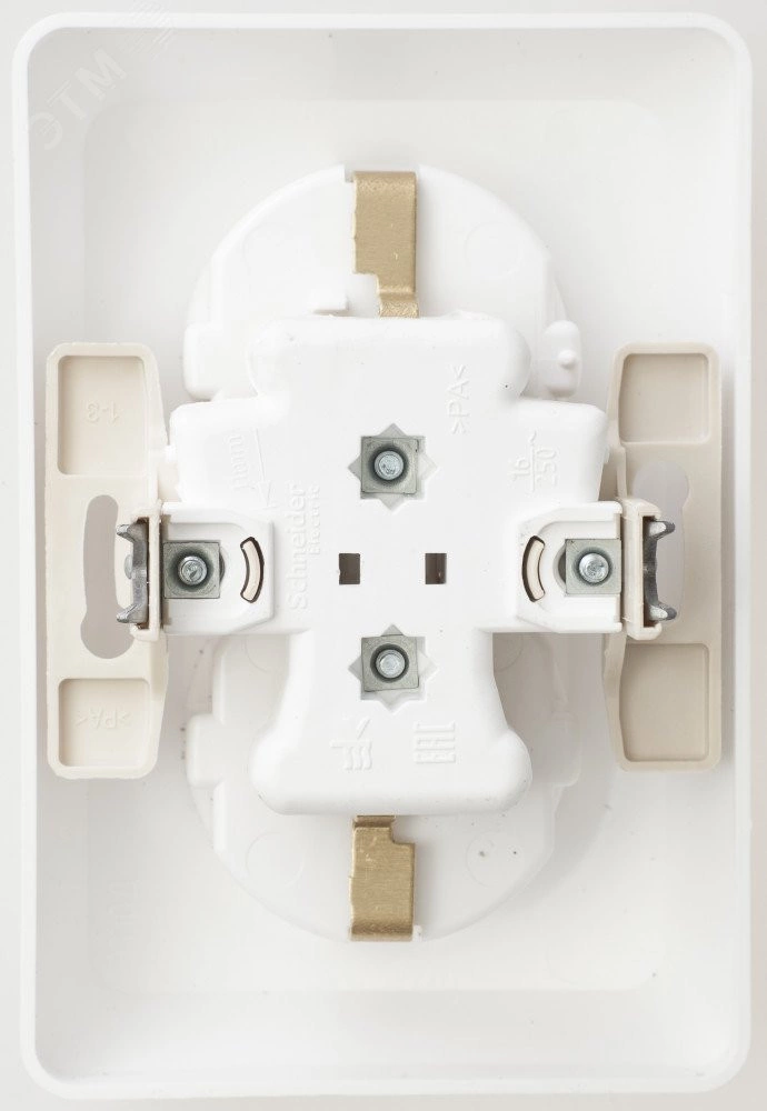 Розетка Schneider Electric ЭТЮД (белый, скрытой установки) двухместная с заземлением, без шторок предназначена для применения в сетях до 250В, на ток до 16А. Двухместная розетка позволяет подключить два устройства в одном месте. Габаритные размеры основания 113*76,5 мм. Заземление обеспечивает безопасность при косвенном прикосновении. Она проста в установке и удобна в применении. Сделано в России.