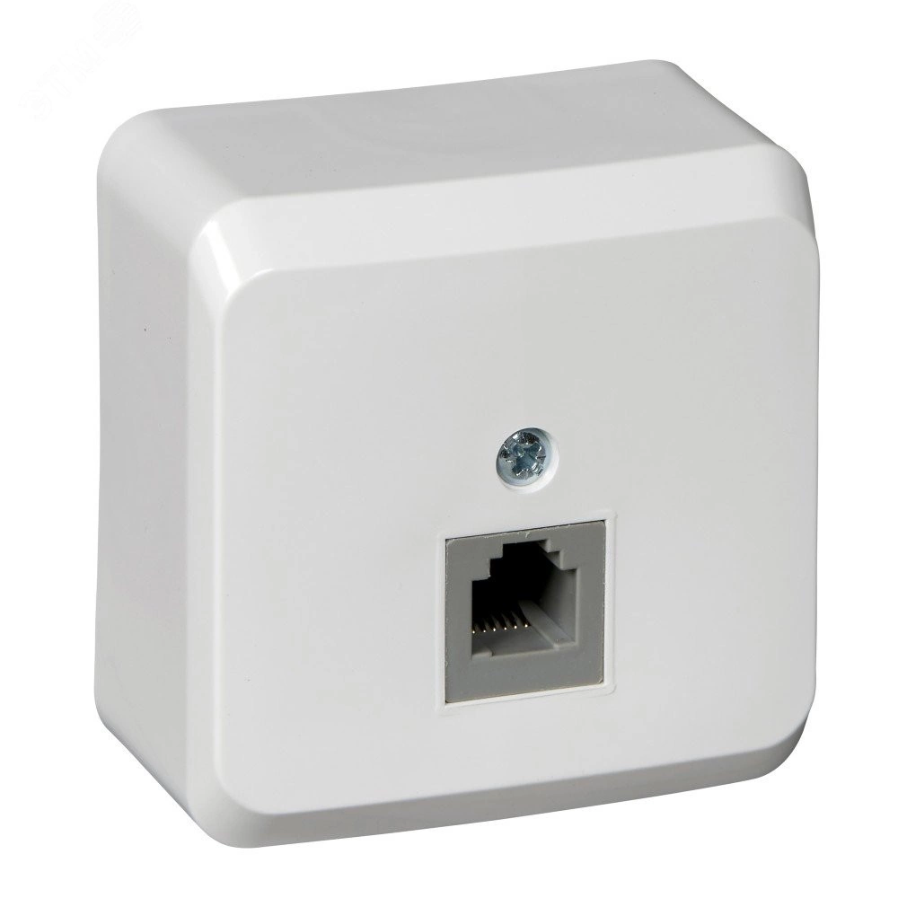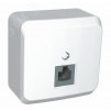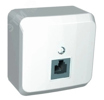 Розетка телефонная RJ 11, белая, наружная установка. серия продукта - Этюд - тип устройства или его аксессуаров - телефонная розетка - комплектация изделия - механизм в сборе - тип покрытия - глянцевая - монтаж - винтами, лапками - тип разъема - RJ11. Преимущества - Удачное решение для города и дачи, Доступная цена, Современный дизайн, Высокая степень надежности, Большой выбор функциональных возможностей и цветовых сочетаний, Простота и удобство монтажа, Соответствие ГОСТ Р и МЭК, Удобная упаковка. применения - Для загородного жилья, Для торговых центров, павильонов, зданий из сэндвич-панелей, где невозможно штробление стен, Прекрасная замена вышедших из строя электроустановочных изделий в многоквартирных домах, Для влажных помещений (IP44)..
