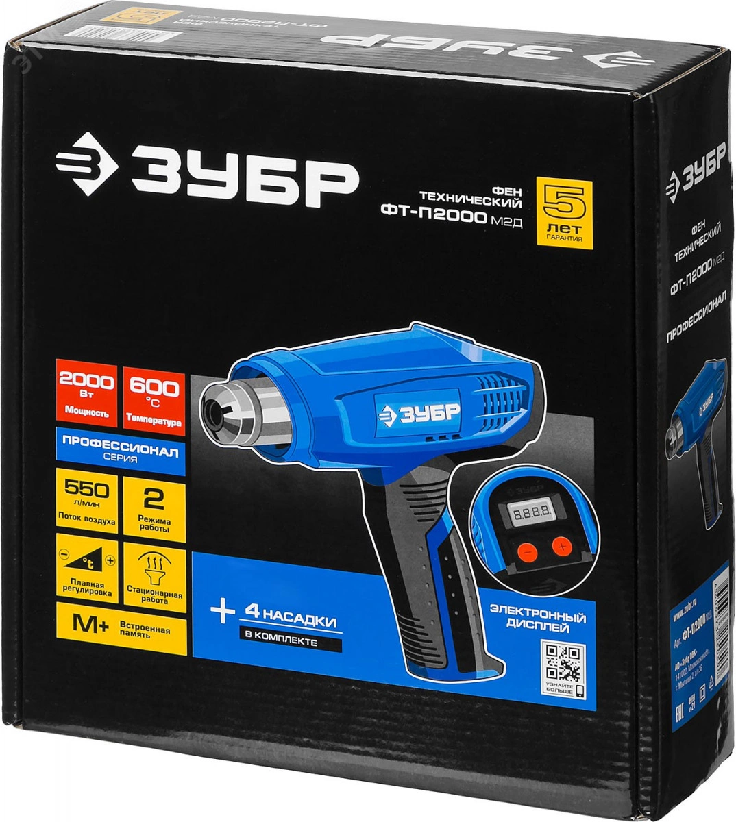 Изделие профессионального уровня на новой технологической базе. Два режима работы с разными температурой и воздушным потоком. Благодаря электронной регулировке температуры, воздушного потока и потребляемой мощности возможна работа с различными материалами. Точная установка температуры с контролем по жидкокристаллическому дисплею. Память последнего рабочего значения температуры упростит настройку и работу при частом выполнении однотипных операций. Ступень холодного обдува позволяет плавно охладить нагревательный элемент по окончании работы, что многократно продлевает его ресурс. Новая схема воздушного потока с перпендикулярным двигателем увеличивает КПД фена. Высококачественный керамический изолятор для длительного срока службы. Увеличенные диаметры нагревательных нитей исключают легкое перегорание.