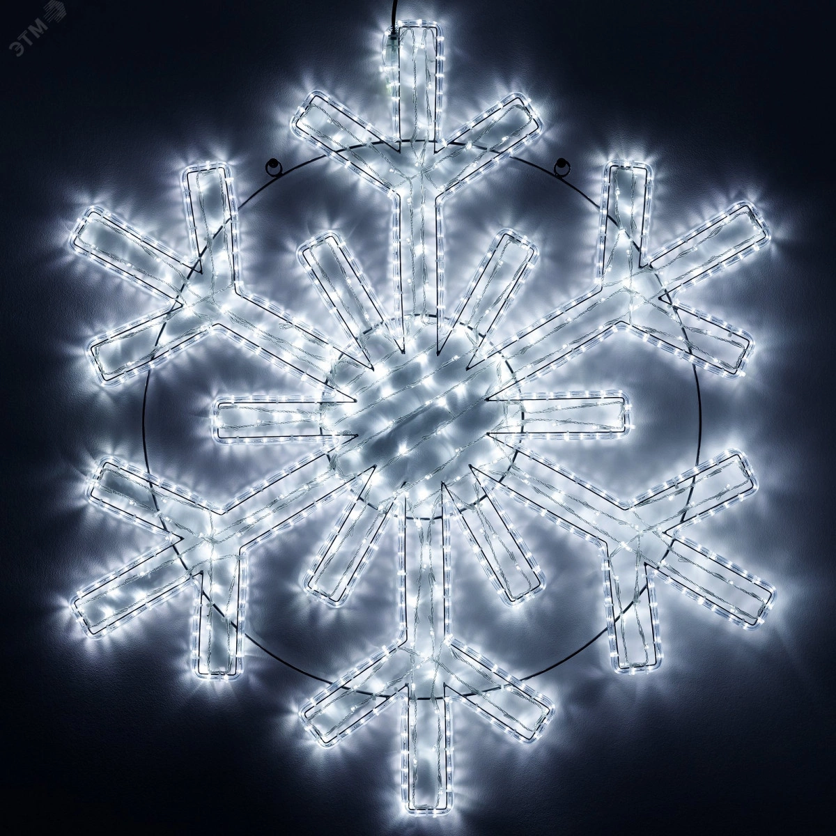 Двухмерная фигура ''Снежинка'' из светодиодного шнура (дюралайта) предназначена для создания светового праздничного декора. Прочный металлический каркас позволяет сохранить форму изделия в неизменном виде при транспортировке и эксплуатации. Может применяться как самостоятельное украшение и как повторяющийся световой элемент иллюминации. Имеет удобное крепление для быстрого и простого монтажа. Подключается к сети питания AC 230 В с помощью питающего кабеля с выпрямителем сетевого напряжения. Высокая степень защиты IP65 позволяет использовать изделие как в помещении, так и на открытом воздухе.