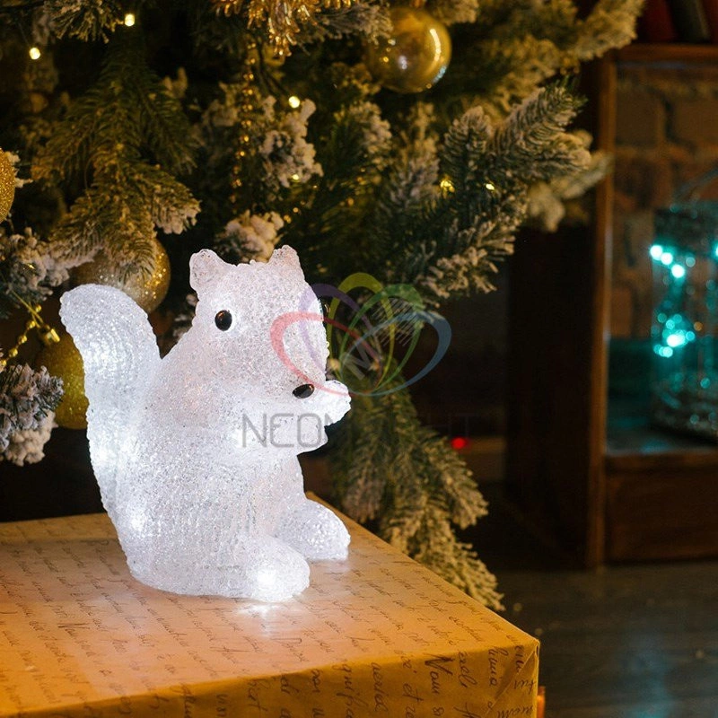 Акриловая светодиодная фигура ''Белка'' 18 см гармонично дополнит декор детской, гостиной, спальни, кухни, станет оригинальным украшением фотозоны, витрины магазина или кафе. Изделие получает питание от 3 батареек типа ААА, которые устанавливаются в аккумуляторный блок в нижней части конструкции. Корпус из фактурного акрила удерживается металлическим каркасом. Внутри располагаются 12 ярких белых светодиодов, создающих эффект объемных контуров. Современный прочный материал не вызывает аллергии, поэтому фигура подходит для детских игр.
