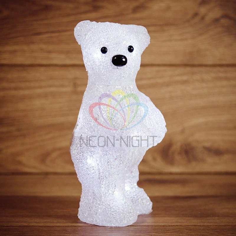 Акриловая светодиодная фигура ''Медвежонок'' высотой 22 см — интересное решение для оформления интерьера, которое станет ярким акцентом, выгодно подчеркнет особенности дизайна и подарит ощущение уюта. 10 ярких светодиодов излучают белый свет нейтрального оттенка, мягко обрамляя контуры и создавая эффект объема. Корпус выполнен из прочного акрила, особая технология обработки поверхности обеспечивает приятную фактуру, визуально имитирующую плюшевую шерсть животного. Фигура работает от 3 батареек типа ААА и полностью безопасна в использовании.