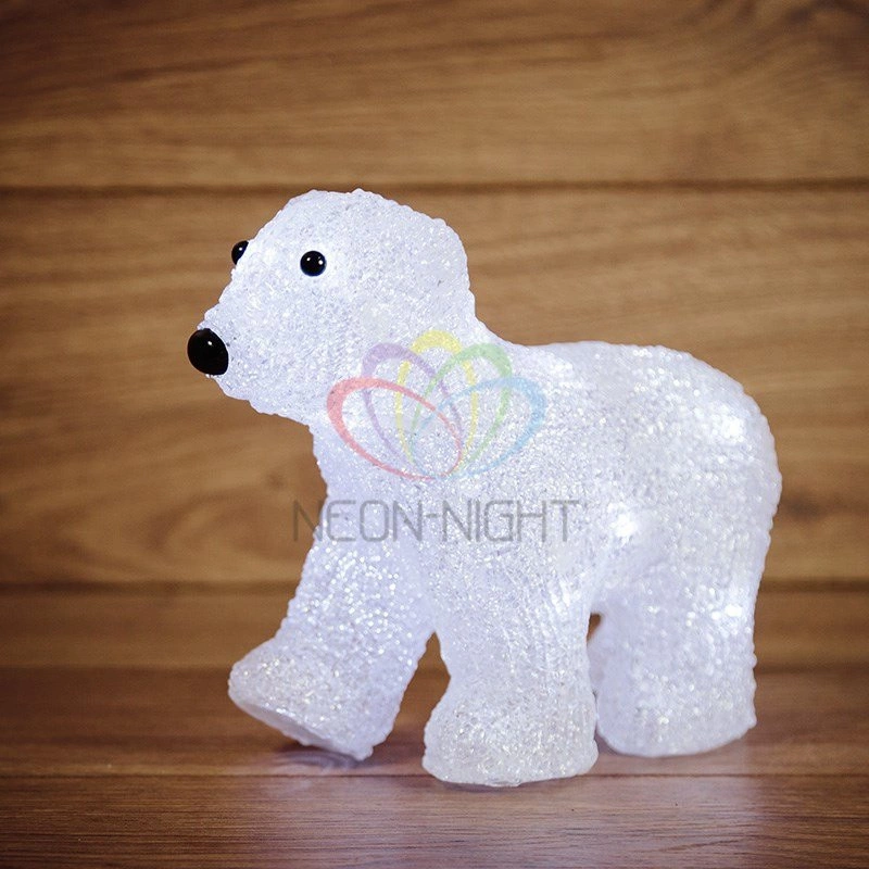 Акриловая светодиодная фигура ''Медвежонок'' высотой 18 см подсвечивается 16 яркими диодами, которые создают эффект объемного контура и экономно тратят заряд трех батареек типа АА. Элементы питания размещаются в аккумуляторном блоке в нижней части фигуры, рядом находится кнопка ON/OFF для управления подсветкой. Светодиодная фигура с защитой IP20 предназначена для использования в интерьере и в сухих отапливаемых помещениях. Декоративная фигура на батарейках полностью безопасна и отлично подходит для оформления гостиной, спальни, кухни, детской комнаты.