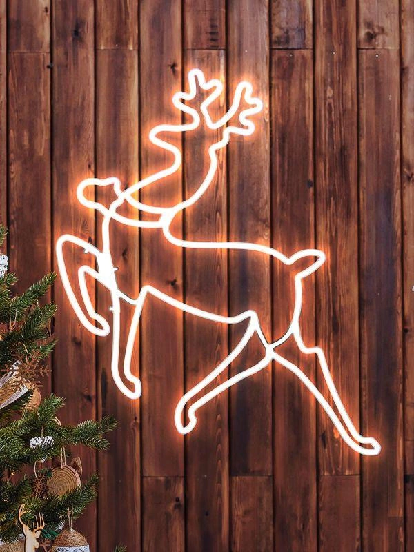 Полное описание: Фигура неоновая Олень 64х60см холод. бел. свет IP44 220В дл. провода 1м Эра ENIOF - 14