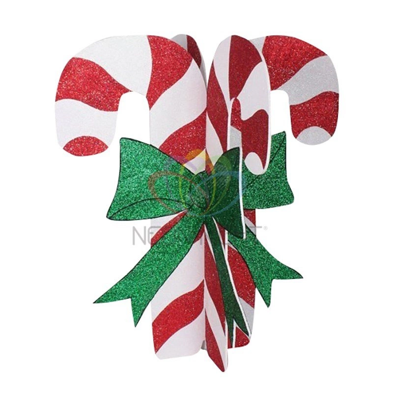 Елочная фигура ''Карамельная палочка'', 89*78 см, цвет белый с красными полосками, каждая плоскость фигуры украшена бантом зеленого цвета. Прекрасно подойдет для украшения уличной елки. Яркие цвета и различия размеров позволят эффектно украсить ель.