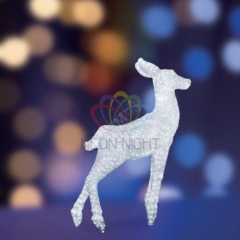 Эти яркие, светящиеся объемные фигуры, состоящие из металлического каркаса, акрила и светодиодов, применяются для оформления и создания новогодней атмосферы в кафе, ресторанах, торговых центрах, магазинах, на площадях и перед входом, а также просто в частных домах и квартирах. Все фигуры укомплектованы понижающим трансформатором , что обеспечивает безопасность при контактировании, а так же имеют степень защиты IP 65, что позволяет использовать их как в помещении, так и на улице. Акриловая светодиодная фигура ''Олень мама'' высотой 155 см, светящаяся более чем 1900 ярких диодов, выполнена по специальной технологии нанесения акрила имитируя шерстяной покров реального животного. Можно создать более интересную композицию и сделать праздник еще ярче, если составить всю семью оленей вместе (''Олень папа'' артикул 513-102 и ''Оленёнок'' 513-103)