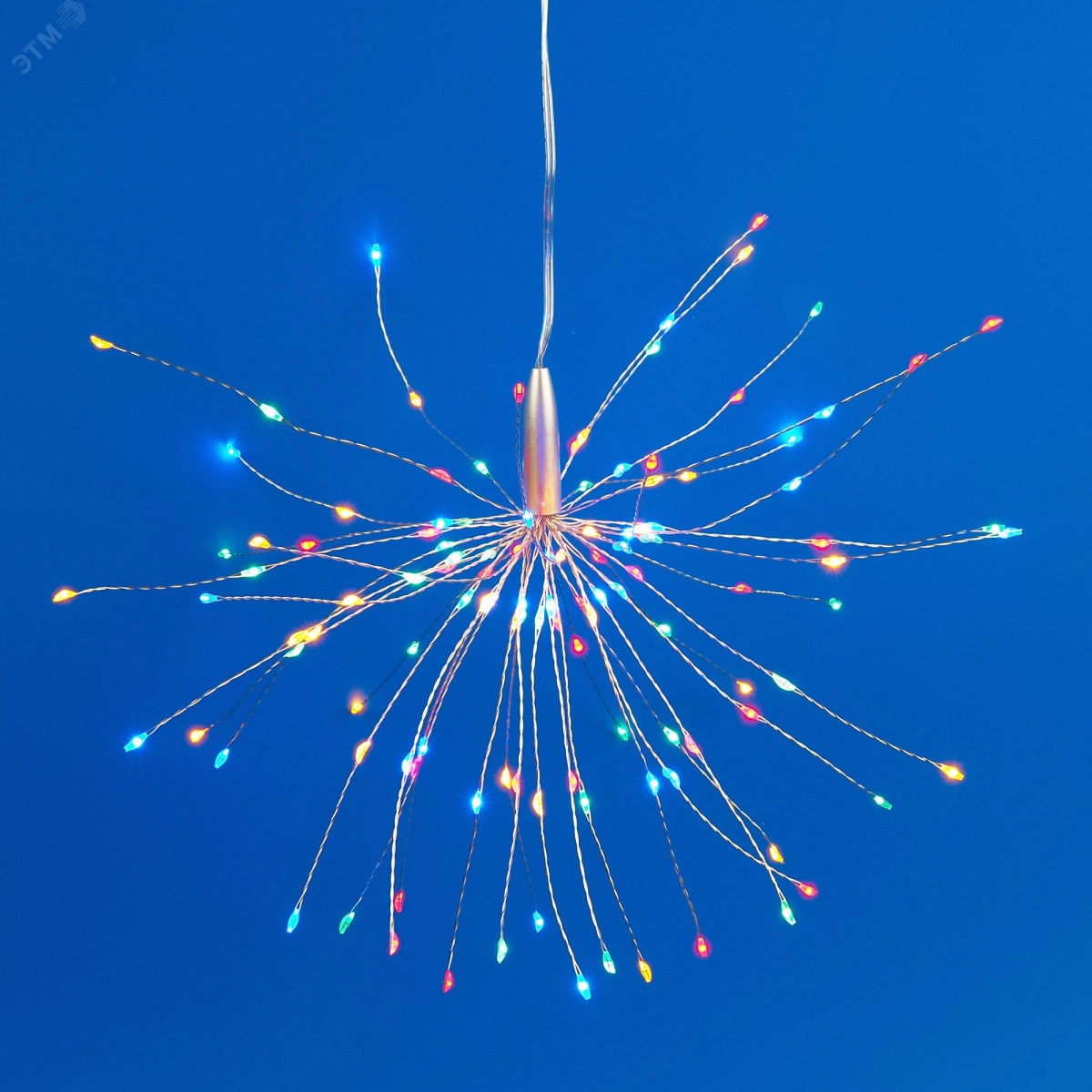Фигура светодиодная Фейерверк на батарейках 3AA (не в/к) 30х30см Подвесная 120 светодиодов Разноцветный свет Пульт ДУ (в/к) Провод прозрачный ULD-H3030-150/DTA/3AA/RC MULTI IP20 FIREWORKS TM Uniel