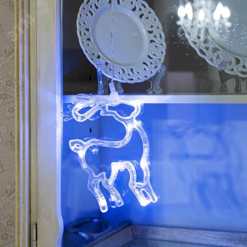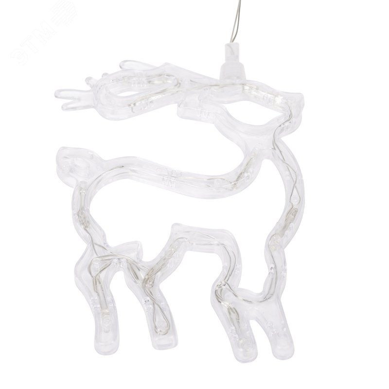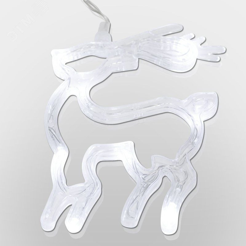 Светодиодная фигура ''Олененок'' на присоске с подвесом гармонично дополнит интерьер детской, гостиной, кухни, наполнит помещение ярким белым свечением задорных огоньков, подарит праздничное настроение взрослым и детям. 8 безопасных диодов питаются от трех мизинчиковых батареек (тип ААА). Одного комплекта элементов хватает на 150 часов непрерывной работы. Удобная присоска, расположенная на батарейном блоке, надежно фиксирует изделие на гладких поверхностях. Гибкий шнур в прозрачной оболочке из ПВХ имеет длину 20 см.
