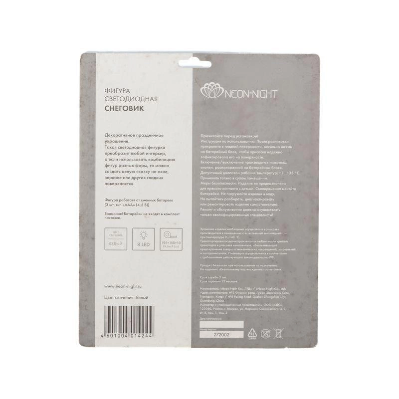 Полное описание: Фигура светодиодная "Снеговик" 195х150х10мм 8LED бел. 1Вт 4.5В IP20 на присоске элементы питания 3хAAA (в компл.) Neon-Night 501-013